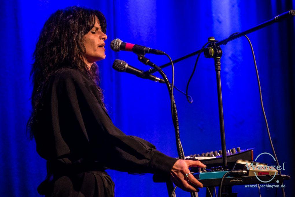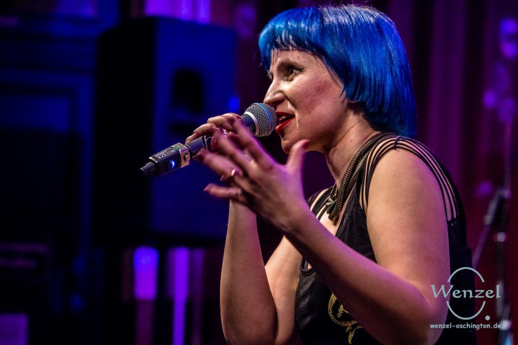 Um 19.30 Uhr wurde es schließlich glamourös melancholisch auf der Bühne des Volksbad Buckau. Die in Berlin geborene und in LA lebende Künstlerin und Produzentin Ava Vegas entführte das Publikum mit ihrer eklektischen, tiefgründigen Interpretation von FolkKino-Indie-Pop in einen Dunst aus dunkel-romantischer Neo-Psychedelia.